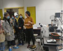同学们实地参观了位于一楼生产区的生物活性涂层制备设备。在专业老师的带领讲解下,同学们更深入地了解了生物活性涂层设备的工作原理并参观了其内部结构及工作环境,近距离地观察了由该设备制出的相关成品。随后,同学们参观了同在一楼的中心一层仪器平台,了解了有关扫描电镜的相关工作原理、中心现有的电镜种类以及不同种类电镜之间的区别。