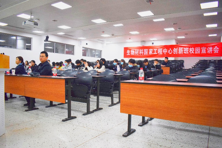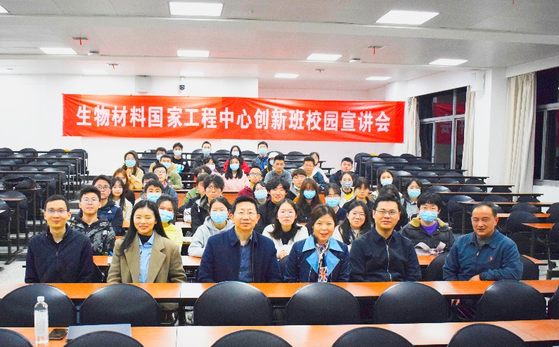 院长/国家生物医学材料工程技术研究中心主任王云兵教授、国家生物医学材料工程技术研究中心副主任范红松教授、学院/中心杨为中教授、杨立副教授、李高参副教授、多位师生代表,以及来自学校多个学院的本科2020级、2021级同学40余人。宣讲仪式由学院党委副书记田单老师主持。