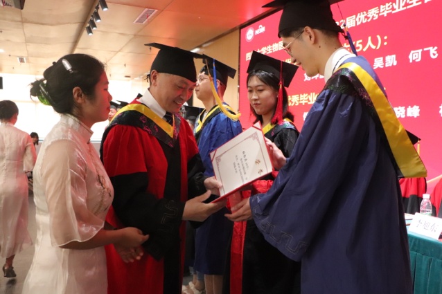 校党委副书记张伟教授、院长王云兵教授亲手为四川省优秀毕业生同学颁发了奖励证书,表彰他们既往的工作,希望师生们能将各项优良的传统传承与发扬,营造出更好的学风,凝练出更好的班风、院风和校风。