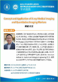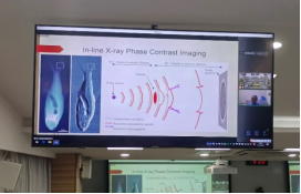 第一个报告是郑斌教授的“Concept and Application of X-ray Medical Imaging and Quantitative Imaging Markers”。他在大洋彼岸在线为同学们深入浅出地讲解了X射线和CT扫描的基本原理和成像特点,向同学们普及了通过X射线的医学成像原理,详细介绍了通过相位衍射分析来进行成像的基本原理与传统光电检测中的单纯强度检测的不同,最后郑教授分享了他本人在该领域的最新学术成果。