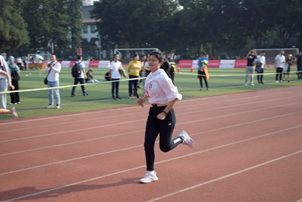 一声枪响伴随着秋日的暖阳,100米的比赛开始了。老师们如同离弦之箭,与时间争分夺秒。一声声加油,一声声呐喊,化为了冲刺时滴落的汗水,争分夺秒只为了最后的冲刺。当终点白线被踩在脚下的那一刻,参赛老师已经成为突破自我的胜利者,不管结果是如何,他们的魅力和风采早在众人心中永驻。
