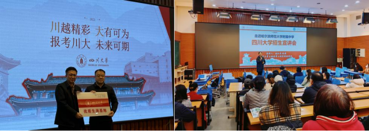 优质生源基地”并举行了授牌仪式。通过各场次的交流与沟通,不仅加强了更多考生和家长对川大总体情况的了解,也帮助不同分数段的考生对是否选择川大以及如何选择川大各个专业有了更清晰的认识,为吸引黑龙江省更多优秀的同学未来能加盟川大打下了坚实的基础。