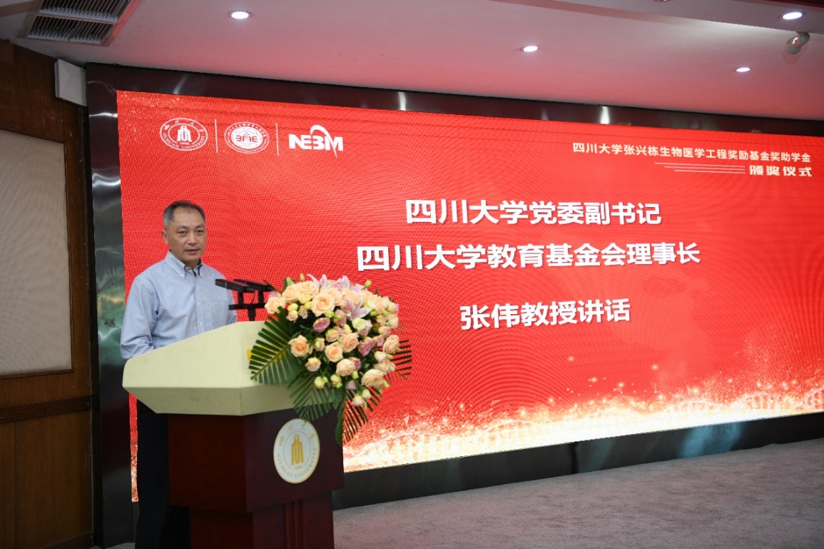 教育基金会对张兴栋院士及其所发起基金的爱心企业共同关注川大的发展表示感谢,并对获奖的同学表示祝贺,同时希望学院师生秉承奖学金的初心,不断增强对科研的执着、专注以及勇于创新、坚韧不拔的动力,再接再厉取得更大的成绩。此外,希望同学们学会感恩,把老一辈科学家的无私关爱一代一代的传承下去,去带动身边的人和事,传递温暖。