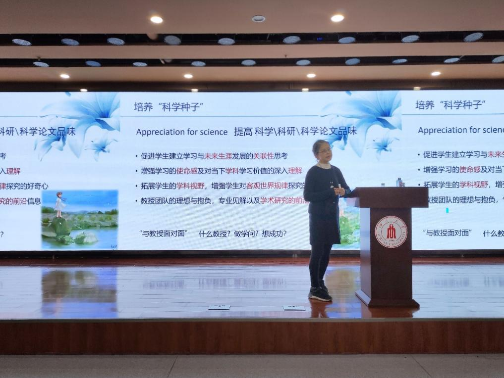 余睽教授希望通过此次“教授面对面”培养“科学的种子”,促进学生建立学习与未来生涯发展的关联性思考,增强学生学习的使命感,培养学生对客观世界规律探究的好奇心,向学生展现教授团队的理想和抱负、专业简介以及学术的前沿信息。