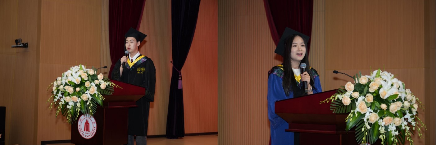 2021级硕士毕业生代表熊书婷同学在致辞中深情感谢了母校的倾力培养、恩师的辛勤付出和同窗的关心支持,并代表全体本科毕业生,表示未来将继承发扬川大优良传统,不忘初心、砥砺前行,在不同的领域为社会贡献川大生医人的力量。