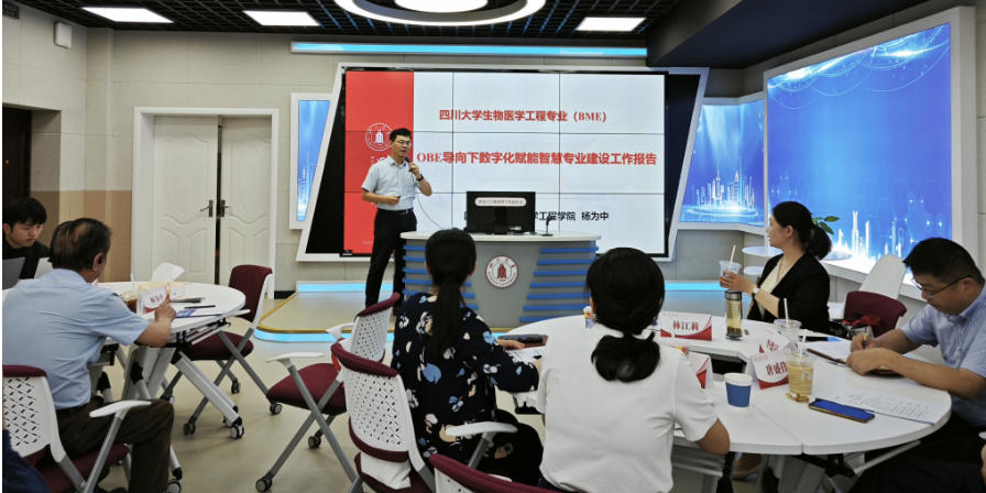 在介绍环节后,工口漫画 系主任杨为中教授带来了以“OBE导向下AI赋能专业/课程一体化改革”为主题的智慧专业建设报告,报告首次提出了OBE导向下的BME数字化专业建设思路,并围绕如何通过“AI赋能专业宣传、专业管理、专业培养”等方面进行深入阐述,并重点展示了AI赋能面向专业认证的达成度分析、数字化赋能的VR专业展示及基于AI知识图谱的“材料生物学”课程改革等典型案例。