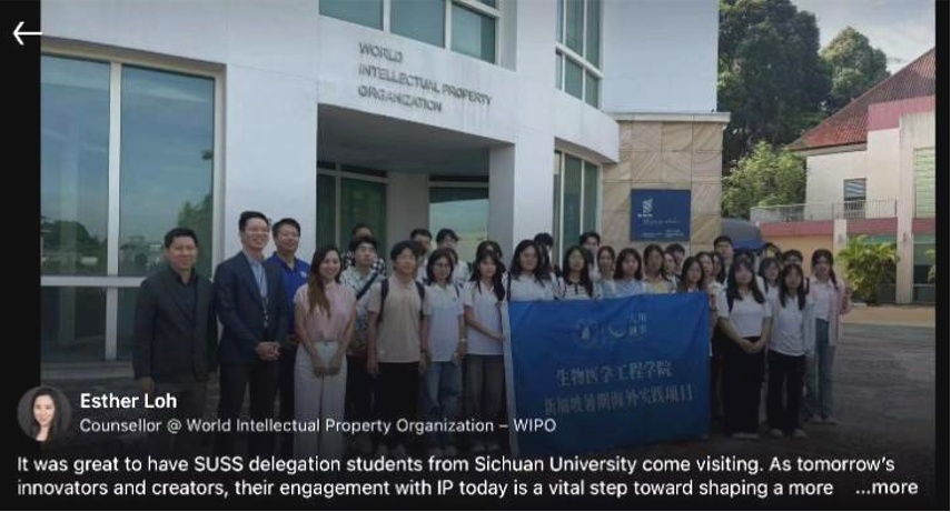 师生到WIPO的参访也登上了联合国世界知识产权组织的领英页面。