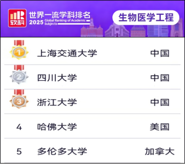 生物医学工程学科连续两年位列全国第三,稳居三甲;软科中国大学专业排名医学信息工程专业更是高居全国榜首。