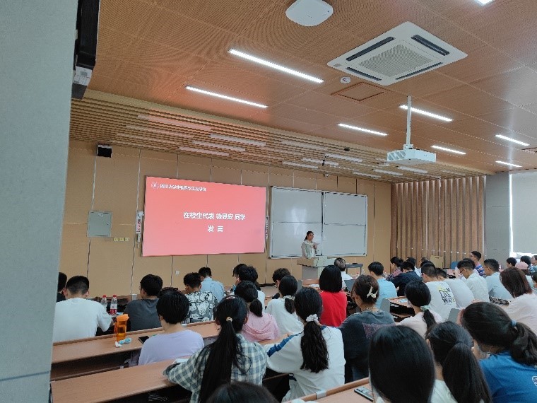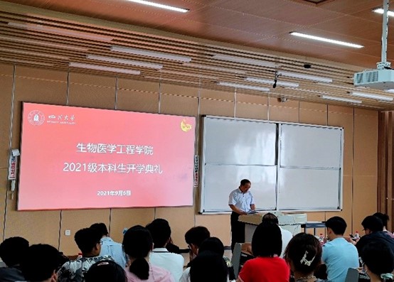 2021级本科生开学典礼在江安校区综合楼C503教室隆重举行。学院党委书记尹光福教授,副书记田单,副院长林江莉教授,系主任芶立教授,教师代表,高年级学生代表以及2021级全体新生参加了开学典礼。开学典礼由党委副书记田单主持。