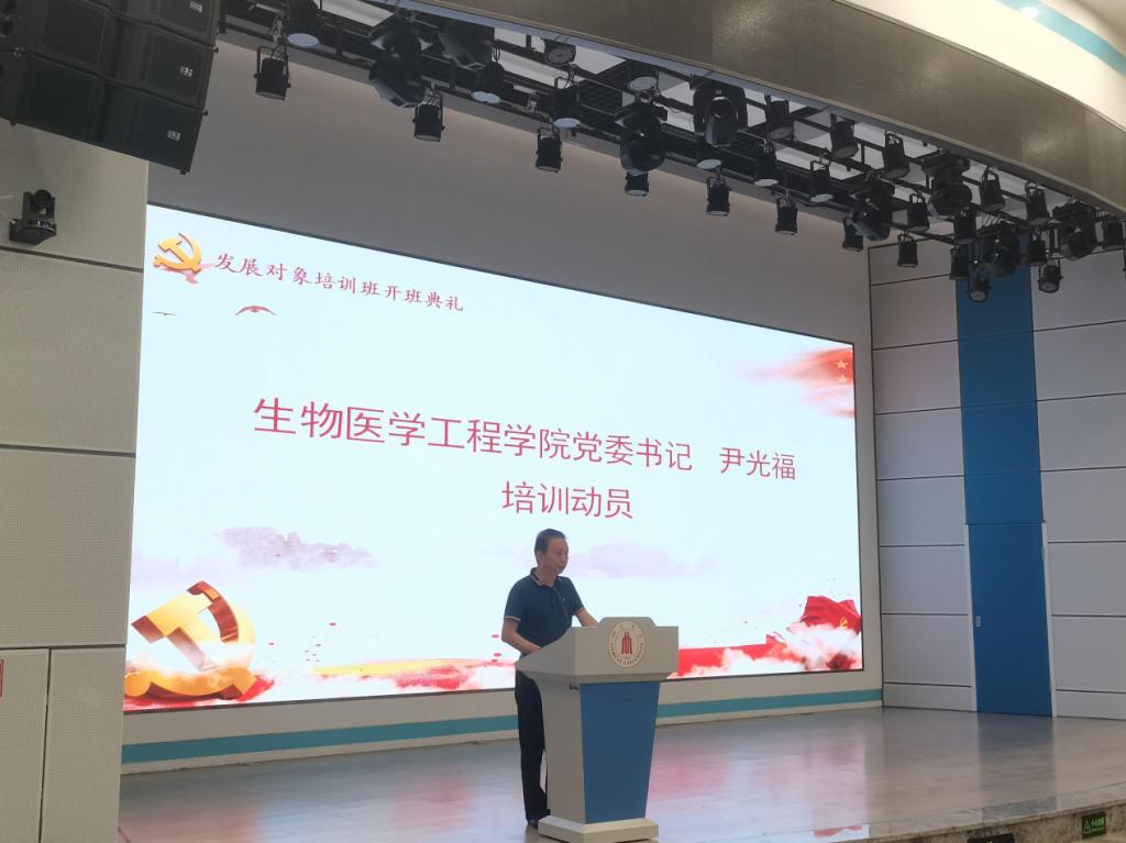 党委书记尹光福代表组织本期发展对象培训班的各学院作培训动员。尹书记对参加本期培训班的发展对象提出了殷切希望和要求,希望同学们珍惜和重视这次学习机会,以党员的标准严格规范自己,认真学习党的理论和党的知识,了解党的历史、现在和未来,提高自身理论水平,加深对党的认识,增强对党的感情,在思想和行动上确立为共产主义事业奋斗终生的理想信念,争取早日加入中国共产党。