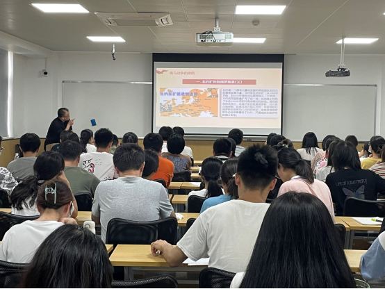 首先,韩宇书记以俄乌战争及其对当今国际形势和我国战略生存环境的影响为切入点,带领同学们全面了解了俄乌战争的起因以及对当今世界格局的影响,俄乌冲突不仅是俄乌两国之间遗留问题的总爆发,也折射出西方文明的扩张危机、旧的文明冲突又在酝酿新的文明冲突等现状。俄乌冲突是继中美经贸摩擦、新冠肺炎疫情暴发后深刻影响世界的又一重大事件,进一步促使世界格局加速演变,在此风云变幻中,挑战与机遇并存。