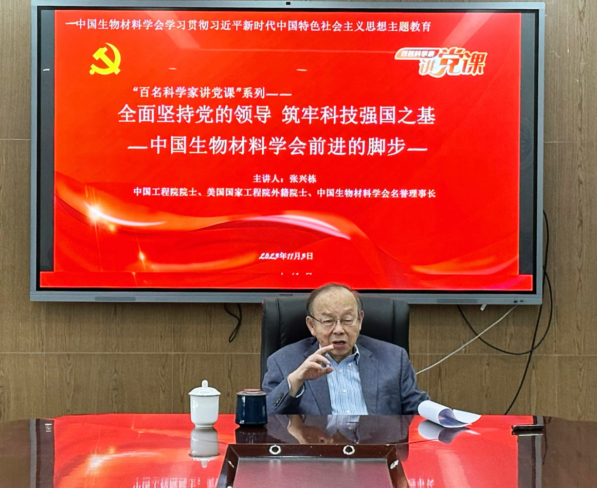 为学习贯彻习近平新时代中国特色社会主义思想,弘扬新时代科学家精神,响应中国科协科技社团党委“百名科学家讲党课”活动,11月3日,中国生物材料学会邀请学会名誉理事长、中国工程院院士、美国国家工程院外籍院士张兴栋教授为中国生物材料学会秘书处全体党员、青年干部以及工口漫画