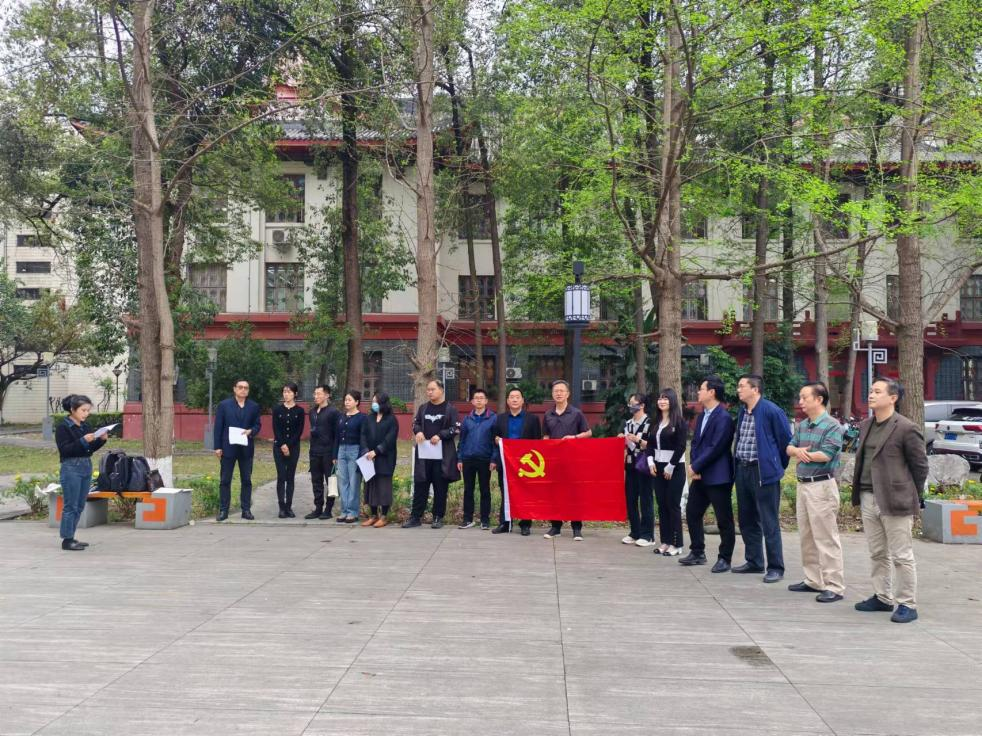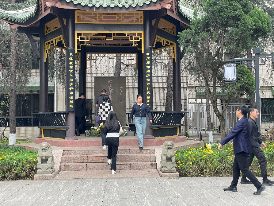 2024年4月1日清明前夕,学院教育教学中心党支部开展主题党日活动:“祭奠川大烈士,弘扬先烈精神,共创一流教学”。支部全体教师参加活动,祭奠为共产主义事业牺牲的川大师生烈士。