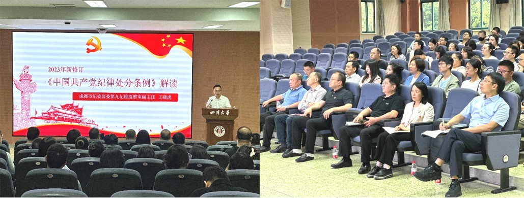 5月29日,工口漫画 机关党委研究生院支部和工口漫画 党委各教职工支部联合举办的警示教育党课在研究生院3-231报告厅顺利举行。本次党课由成都市纪委监委第九纪检监察室副主任王晓虎主讲,研究生院常务副院长李忠明、支部书记兼副院长赵红军、研工部长兼副院长陈华明、副院长杜瑛、培养办副主任朱敏,生医学院党委书记韩宇、副书记田单及五个党支部总计80余名教职工、离退休党员参加了本次学习。