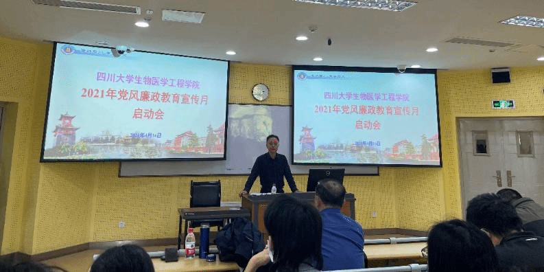 于4月16日召开了全院党风廉政教育会。会议以“学党史、践初心,庆百年华诞;守党纪、砺作风,谱一流新篇”为主题,由学院党委书记尹光福教授主持,学院党政领导班子全体成员、党委委员、纪委委员、各支部书记以及师生党员200余人参加了会议。