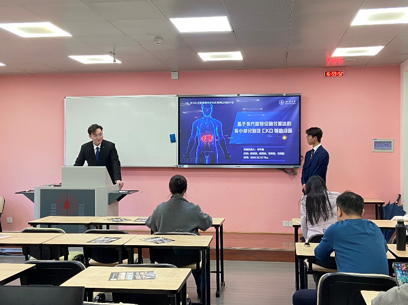 为加强对学生创新创业训练计划的项目管理,提升学生的创新实践能力,2024年12月12日下午,医学信息工程专业在望江校区基础教学楼A座举行2025年度“国家级大学生创新创业训练计划”创新训练项目立项答辩会,对本专业学生申报的创新训练项目进行立项考核,参与本次立项答辩的队伍一共有16支,分为两组每组8支队伍同时进行。
