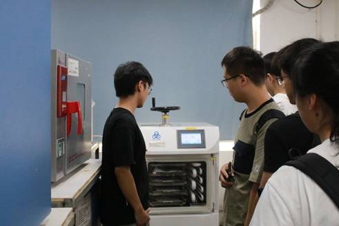 在讲座结束后,线下营员跟随志愿者前往生物材料楼的实验室进行参观学习,深入了解学院的科研情况、日常生活及实验室设备设施。