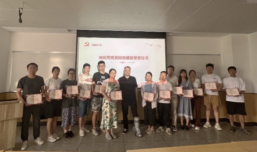 2022年度优秀共产党员”荣誉称号的党员同志颁发了荣誉证书。韩书记鼓励各位党员同志再接再厉,争做模范先锋,在日常生活中要认真履行党员职责,不断学习党的理论知识,自觉用党的创新理论武装头脑,指导实践。作为新时代的青年党员,我们要时刻保持政治上的清醒和坚定,筑牢信仰之基,赓续精神血脉,自觉涵养“乱云飞渡仍从容”的定力,保持“咬定青山不放松”的韧劲,把对党忠诚落到一言一行、一点一滴之中,全身心投入到党的事业,经得起人民、历史和实践的检验,不负组织重托、不负人民期望!